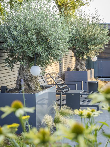 Modern & Geometrisch: Klare Linien, reduzierte Artenwahl und architektonische Formgehölze, die als skulpturale Highlights fungieren.