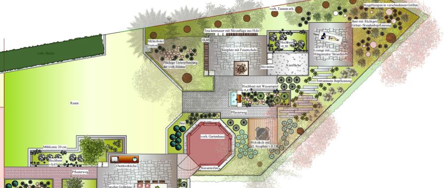 Der Entwurf ist die Grundlage für eine gelungene Neu- oder Umgestaltung ihres Gartens. Wir planen ihren Garten phantasiesvoll und individuell maßgeschneidert auf ihre Wünsche und Bedürfnisse und erstellen für Sie einen maßstabsgerechten CAD-unterstütztem Entwurf. Dieser dient zugleich als Basis für ein Angebot über die von Ihnen gewünschten landschaftsgärtnerischen Arbeiten. Der Gartenentwurf ist Voraussetzung für einen individuell zugeschnittenen Garten, für die fachgerechte Umsetzung der Gartenbauarbeiten und für Kostensicherheit bei der Umsetzung.