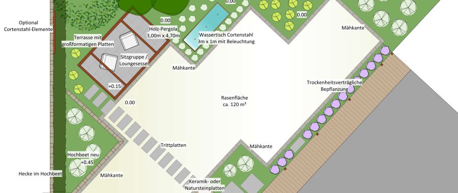 Der Entwurf ist die Grundlage für eine gelungene Neu- oder Umgestaltung ihres Gartens. Wir planen ihren Garten phantasiesvoll und individuell maßgeschneidert auf ihre Wünsche und Bedürfnisse und erstellen für Sie einen maßstabsgerechten CAD-unterstütztem Entwurf. Dieser dient zugleich als Basis für ein Angebot über die von Ihnen gewünschten landschaftsgärtnerischen Arbeiten. Der Gartenentwurf ist Voraussetzung für einen individuell zugeschnittenen Garten, für die fachgerechte Umsetzung der Gartenbauarbeiten und für Kostensicherheit bei der Umsetzung.